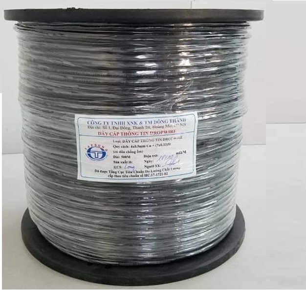 Dây thuê bao ngoài trời hay còn gọi là cáp điện thoại 2 đôi ngoài trời có gia cường giúp đi xa chịu tải tốt,