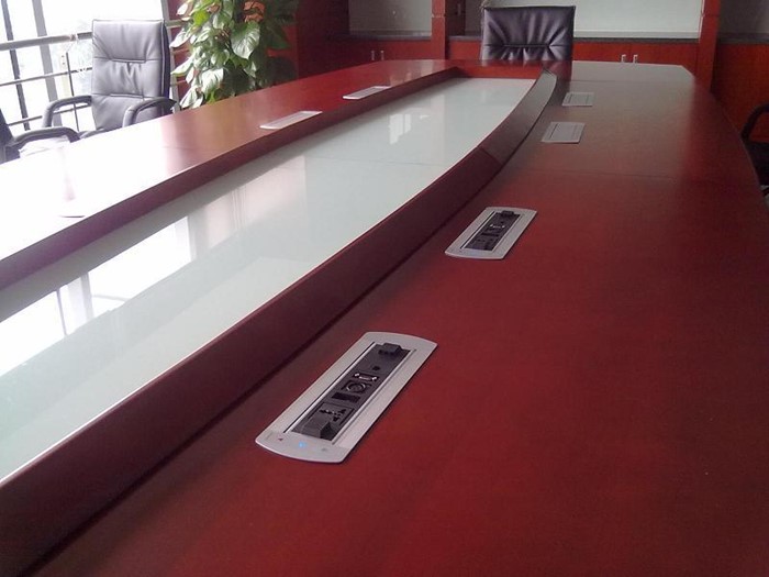 Hiện nay với các phòng họp hội nghị của các công ty tập đoàn không thể thiếu được các thiết bị ổ cắm đa năng được lắp đặt âm trên bàn họp ( chúng không thể thiếu trong các gói thiết kế của các chuyên gia nội thất hiện nay )