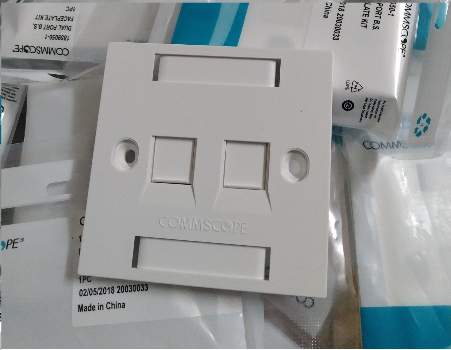 Mặt ổ cắm mạng Wall plate hình vuông 1 port, 2 ports chính hãng AMP/commscope màu trắng sữa chuyên dùng lắp ổ cắm mạng, thoại cho văn phòng ,tòa nhà ...